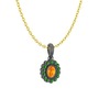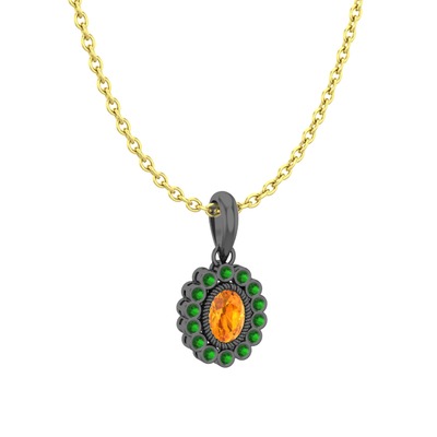 Sitrin ve yeşil kuvars 925 ayar siyah rodyum kaplama gümüş kolye (40 cm altın rolo zincir)