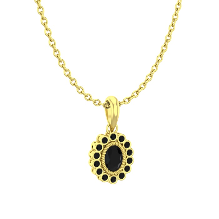 Siyah zirkon 925 ayar altın kaplama gümüş kolye (40 cm altın rolo zincir)