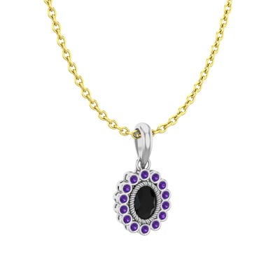 Siyah zirkon ve ametist 18 ayar beyaz altın kolye (40 cm altın rolo zincir)