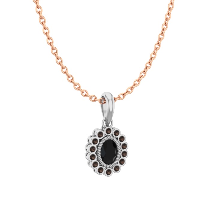 Siyah zirkon ve dumanlı kuvars 925 ayar gümüş kolye (40 cm gümüş rolo zincir)