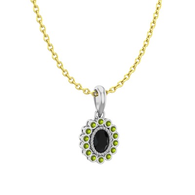 Siyah zirkon ve peridot 14 ayar beyaz altın kolye (40 cm altın rolo zincir)