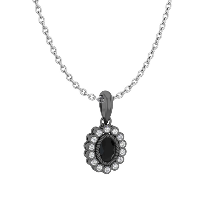 Siyah zirkon ve pırlanta 925 ayar siyah rodyum kaplama gümüş kolye (0.154 karat, 40 cm beyaz altın rolo zincir)