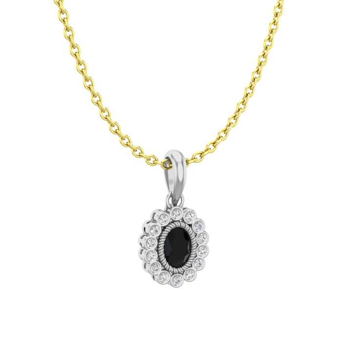 Siyah zirkon ve swarovski 18 ayar beyaz altın kolye (40 cm altın rolo zincir)