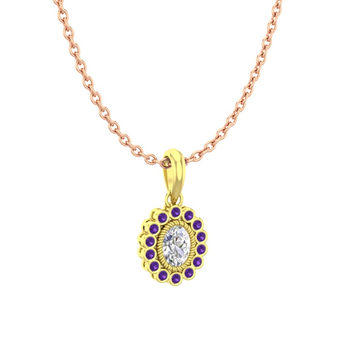 Swarovski ve ametist 925 ayar altın kaplama gümüş kolye (40 cm rose altın rolo zincir)