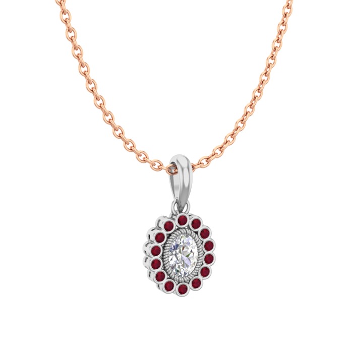 Swarovski ve kök yakut 8 ayar beyaz altın kolye (40 cm gümüş rolo zincir)