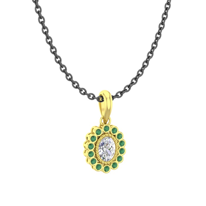 Swarovski ve kök zümrüt 14 ayar altın kolye (40 cm gümüş rolo zincir)