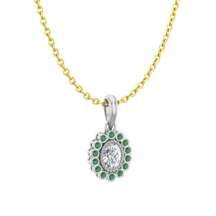 Swarovski ve kök zümrüt 14 ayar beyaz altın kolye (40 cm altın rolo zincir)