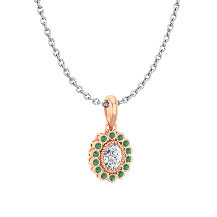 Swarovski ve kök zümrüt 18 ayar rose altın kolye (40 cm gümüş rolo zincir)