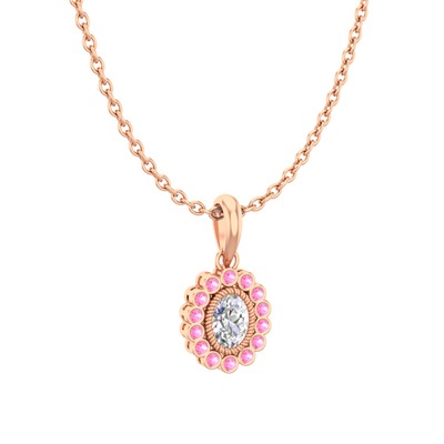 Swarovski ve pembe kuvars 14 ayar rose altın kolye (40 cm rose altın rolo zincir)