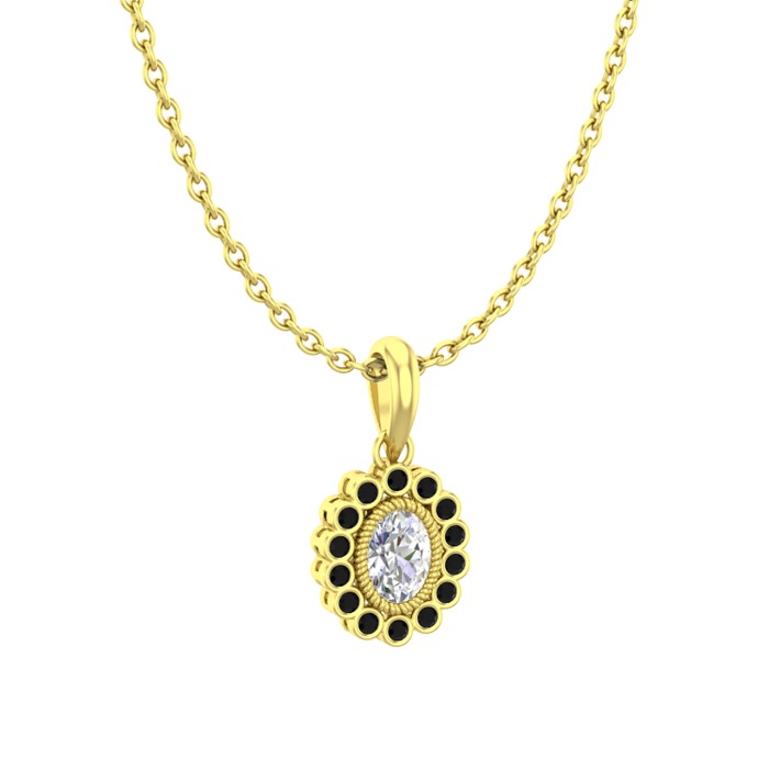 Swarovski ve siyah zirkon 8 ayar altın kolye (40 cm gümüş rolo zincir)