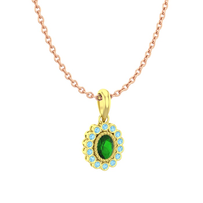 Yeşil kuvars ve akuamarin 14 ayar altın kolye (40 cm rose altın rolo zincir)