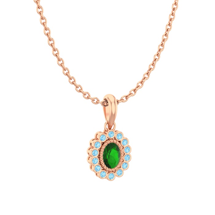 Yeşil kuvars ve akuamarin 18 ayar rose altın kolye (40 cm rose altın rolo zincir)