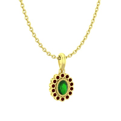 Yeşil kuvars ve garnet 18 ayar altın kolye (40 cm altın rolo zincir)