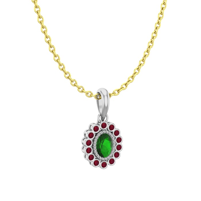 Yeşil kuvars ve kök yakut 8 ayar beyaz altın kolye (40 cm altın rolo zincir)