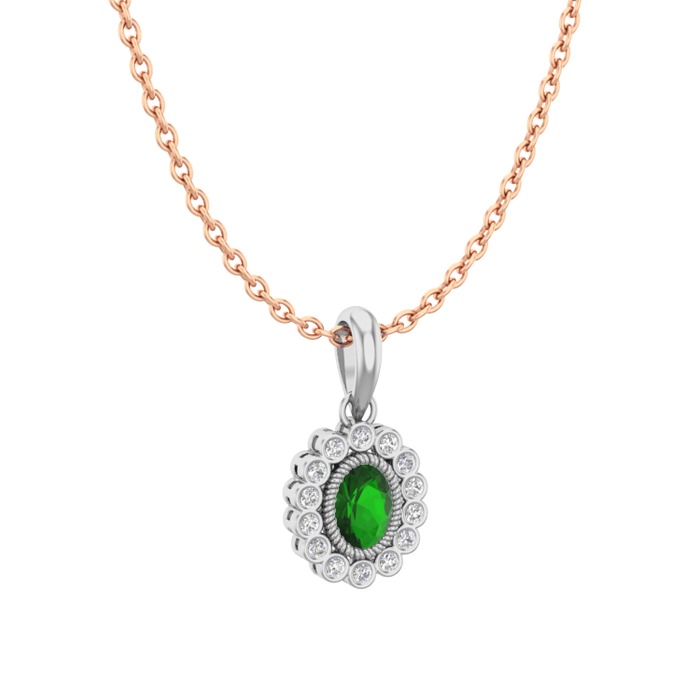 Yeşil kuvars ve pırlanta 14 ayar beyaz altın kolye (0.154 karat, 40 cm rose altın rolo zincir)