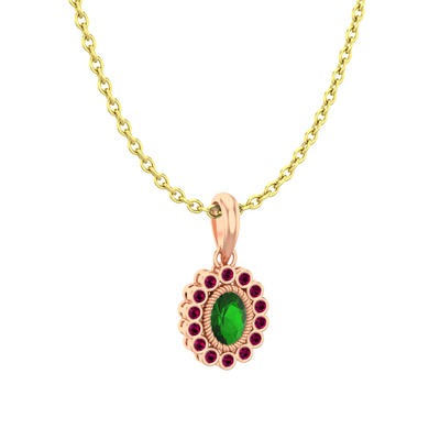 Yeşil kuvars ve rodolit garnet 925 ayar rose altın kaplama gümüş kolye (40 cm altın rolo zincir)