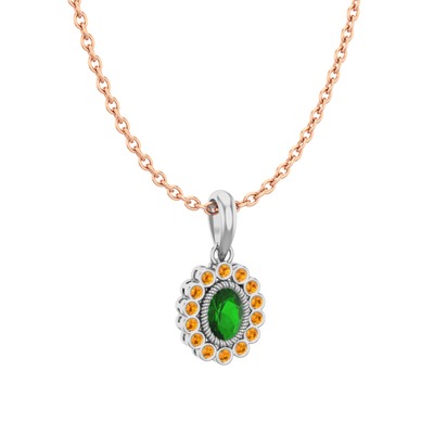Yeşil kuvars ve sitrin 8 ayar beyaz altın kolye (40 cm rose altın rolo zincir)
