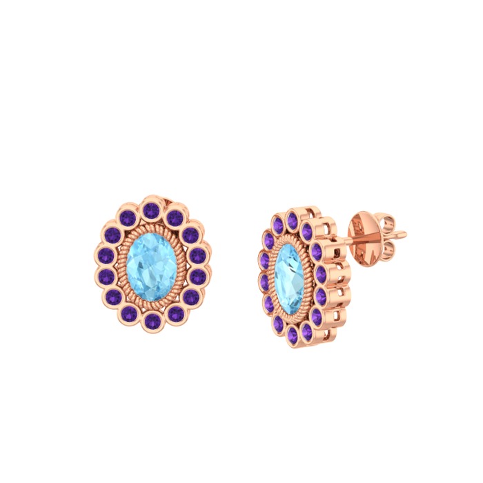 Akuamarin ve ametist 18 ayar rose altın küpe