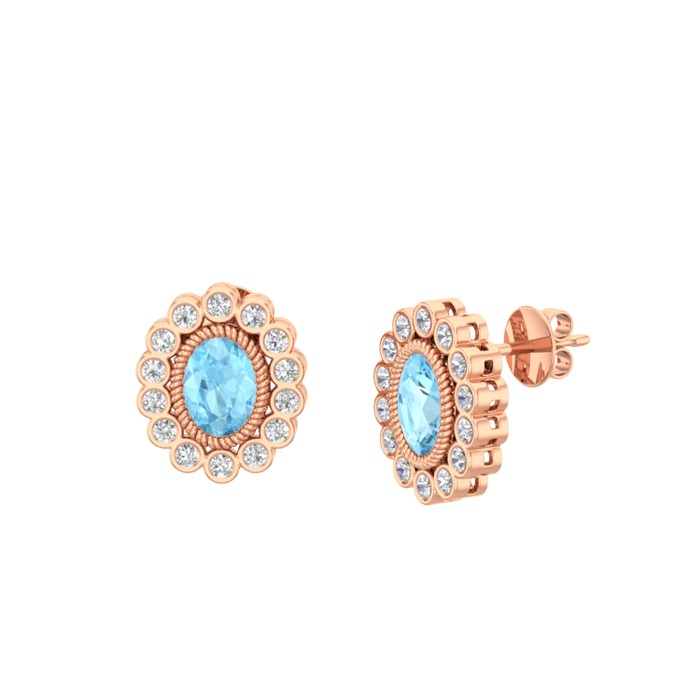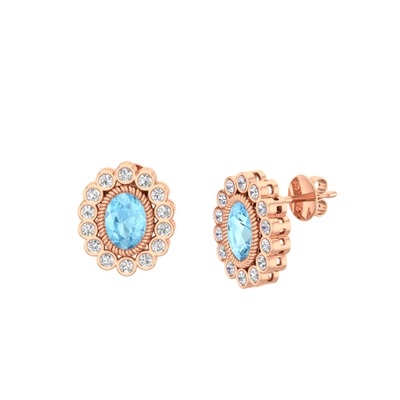 Akuamarin ve swarovski 18 ayar rose altın küpe