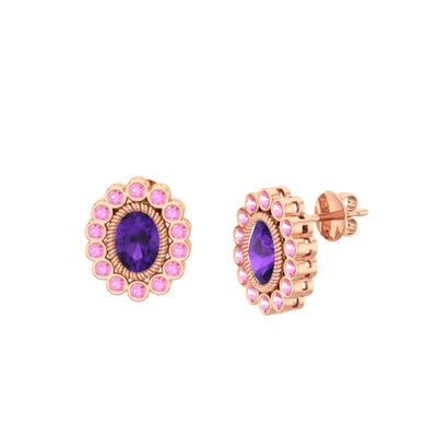 Ametist ve pembe kuvars 925 ayar rose altın kaplama gümüş küpe