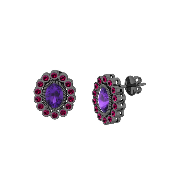 Ametist ve rodolit garnet 925 ayar siyah rodyum kaplama gümüş küpe