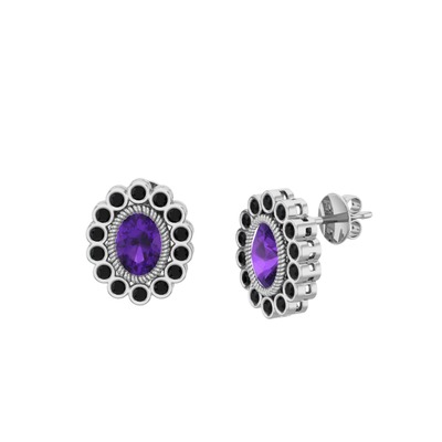 Ametist ve siyah zirkon 925 ayar gümüş küpe