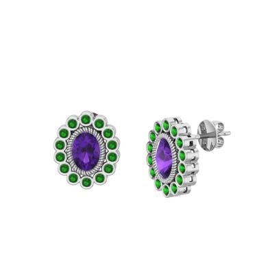 Ametist ve yeşil kuvars 14 ayar beyaz altın küpe