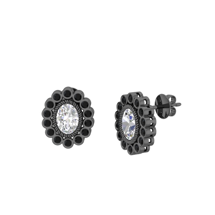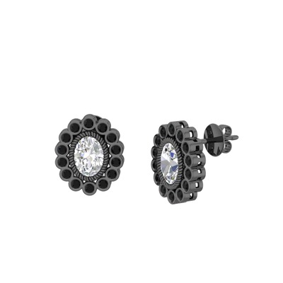 Beyaz zirkon ve siyah zirkon 925 ayar siyah rodyum kaplama gümüş küpe
