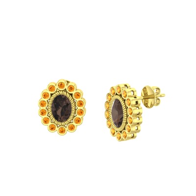 Dumanlı kuvars ve sitrin 8 ayar altın küpe
