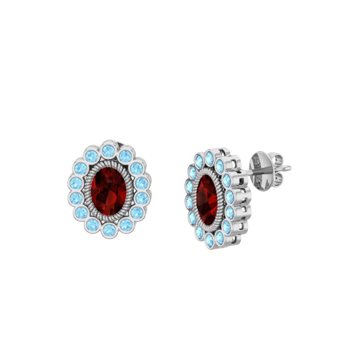 Garnet ve akuamarin 18 ayar beyaz altın küpe