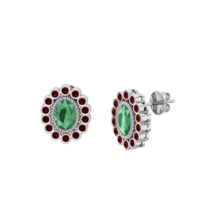 Kök zümrüt ve garnet 925 ayar gümüş küpe
