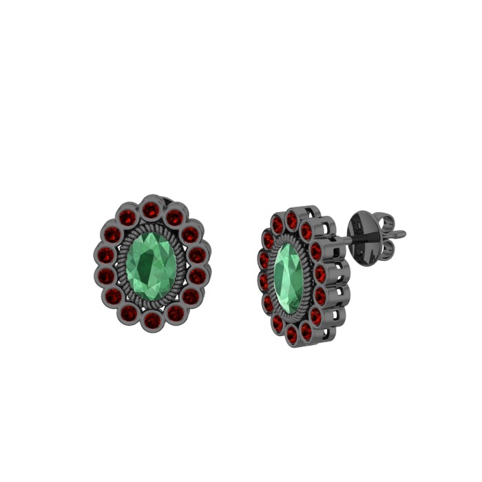 Kök zümrüt ve garnet 925 ayar siyah rodyum kaplama gümüş küpe