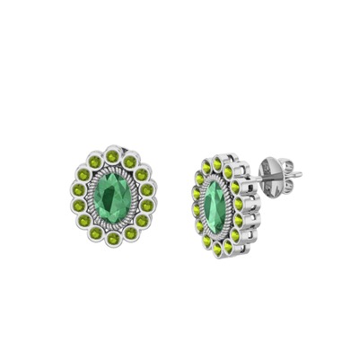 Kök zümrüt ve peridot 8 ayar beyaz altın küpe