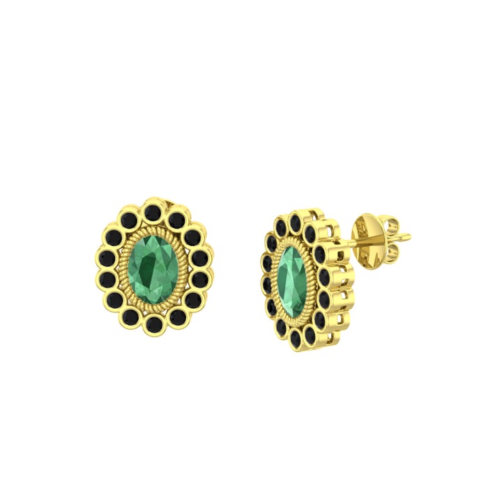 Kök zümrüt ve siyah zirkon 8 ayar altın küpe