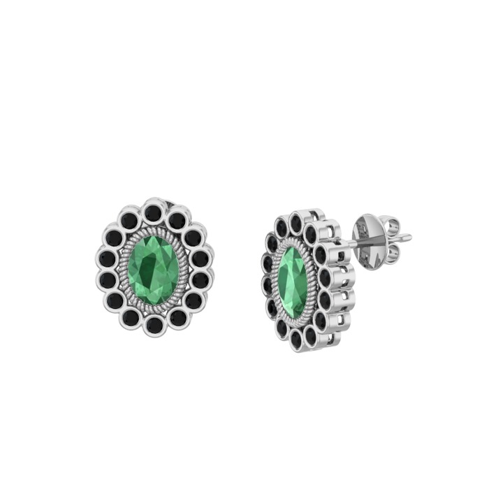Kök zümrüt ve siyah zirkon 8 ayar beyaz altın küpe
