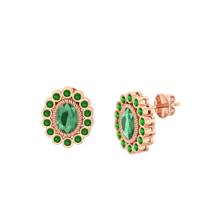 Kök zümrüt ve yeşil kuvars 8 ayar rose altın küpe