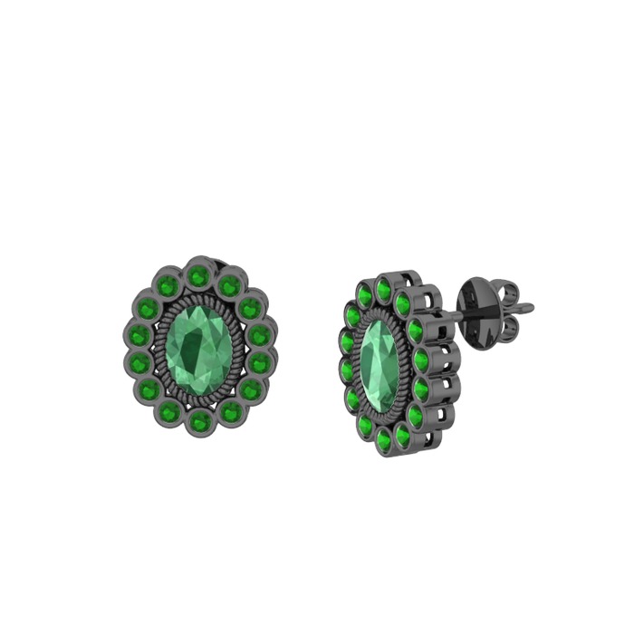 Kök zümrüt ve yeşil kuvars 925 ayar siyah rodyum kaplama gümüş küpe