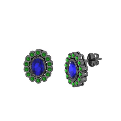 Lab safir ve yeşil kuvars 925 ayar siyah rodyum kaplama gümüş küpe