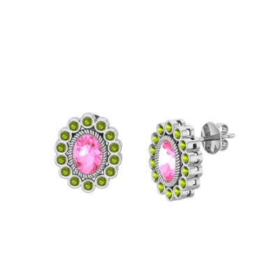 Pembe kuvars ve peridot 14 ayar beyaz altın küpe