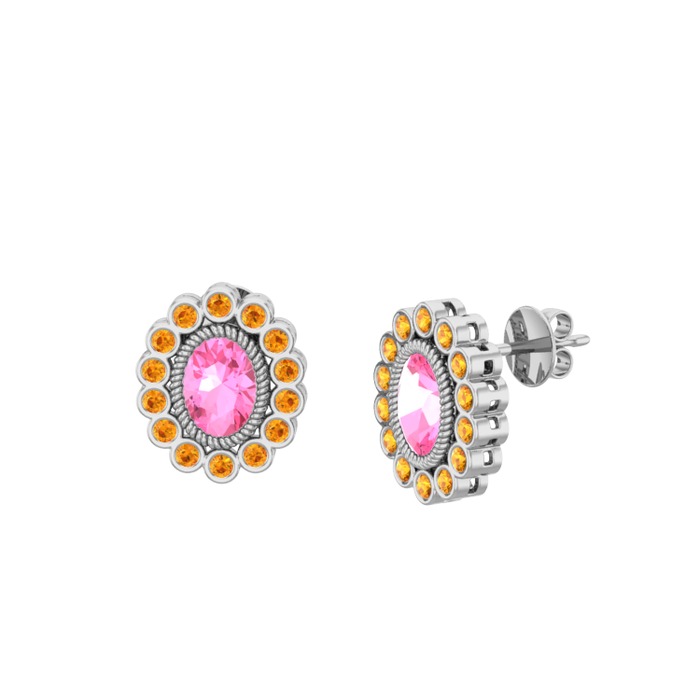 Pembe kuvars ve sitrin 8 ayar beyaz altın küpe