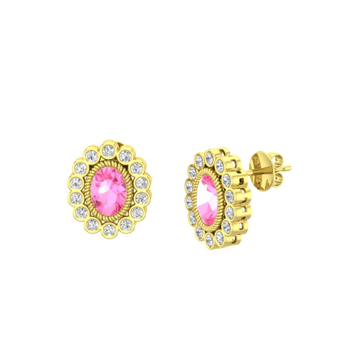 Pembe kuvars ve swarovski 18 ayar altın küpe