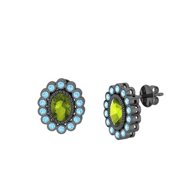 Peridot ve akuamarin 925 ayar siyah rodyum kaplama gümüş küpe