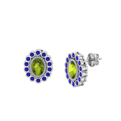 Peridot ve lab safir 18 ayar beyaz altın küpe