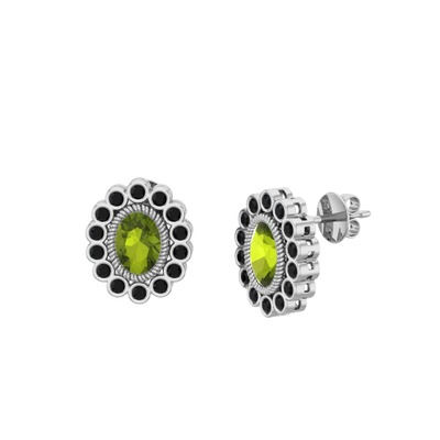 Peridot ve siyah zirkon 925 ayar gümüş küpe