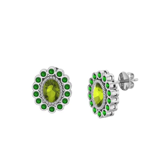 Peridot ve yeşil kuvars 14 ayar beyaz altın küpe