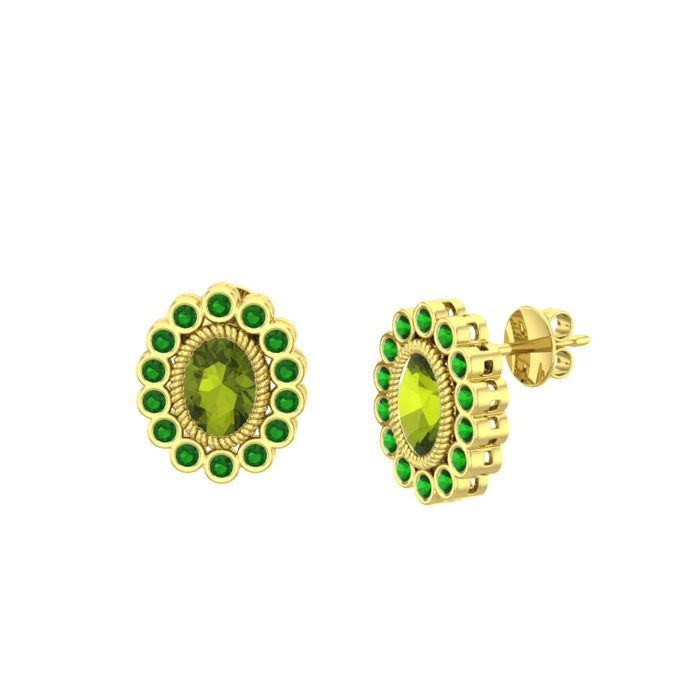 Peridot ve yeşil kuvars 18 ayar altın küpe
