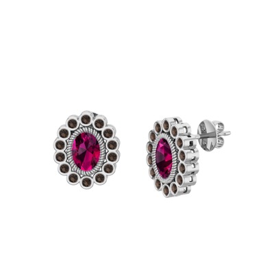 Rodolit garnet ve dumanlı kuvars 18 ayar beyaz altın küpe