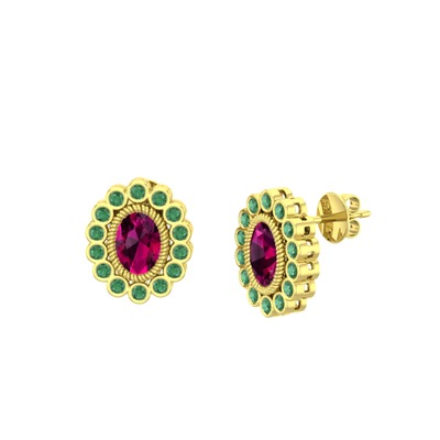 Rodolit garnet ve kök zümrüt 925 ayar altın kaplama gümüş küpe