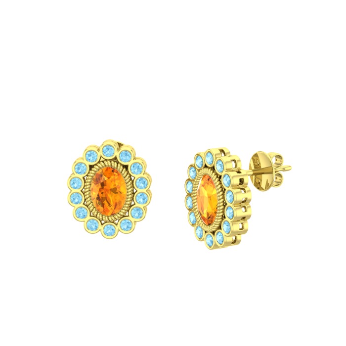 Sitrin ve akuamarin 925 ayar altın kaplama gümüş küpe