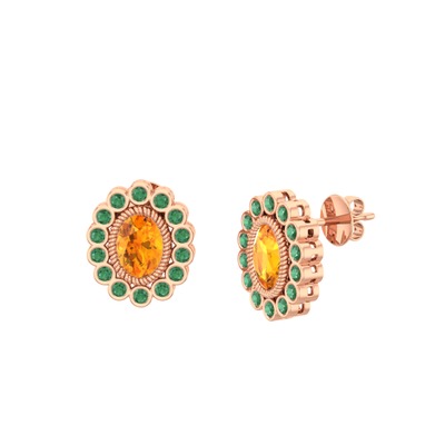 Sitrin ve kök zümrüt 925 ayar rose altın kaplama gümüş küpe